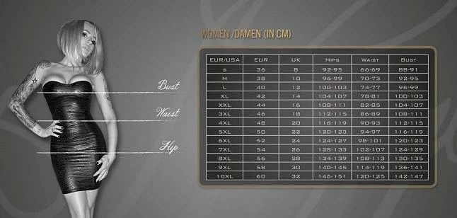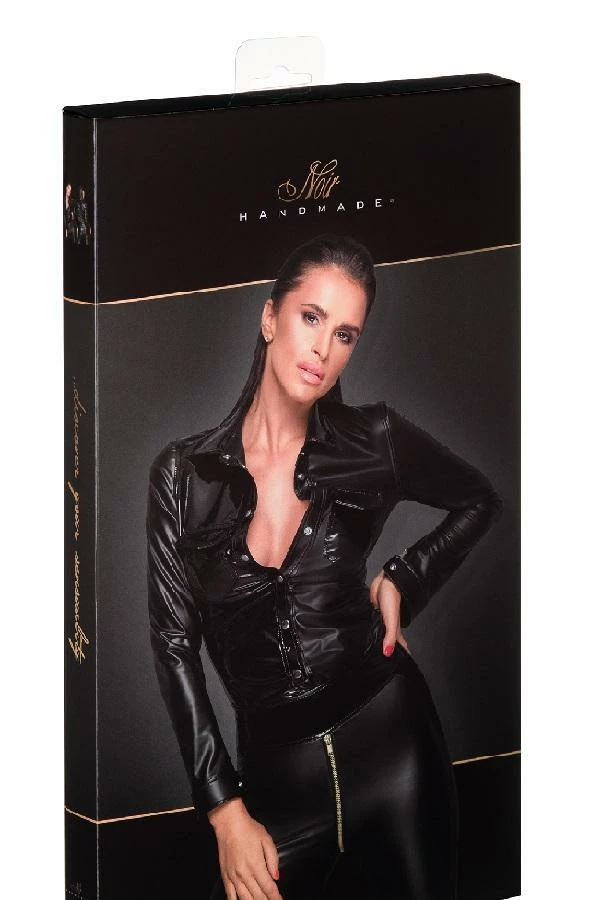 Breath taking top with a trendy material mix of Power wet look and PVC. Thanks to the button placket, the size of the cleavage can be adjusted.