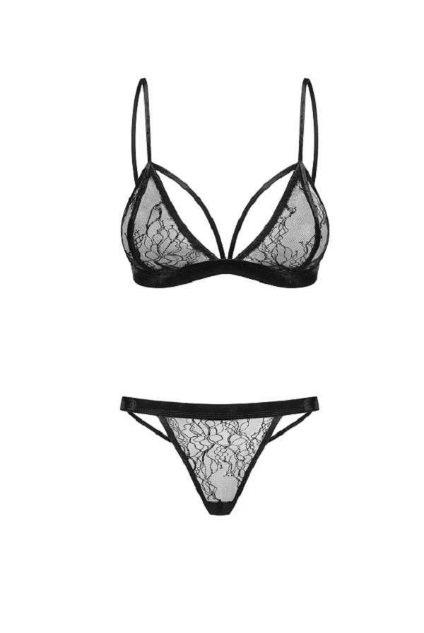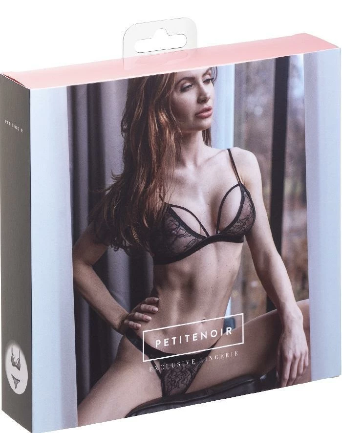 Luxury lingerie set by Noir handmade Poland. Lace soft bra with matching thong from Noir Handmade Petite Noir collection.