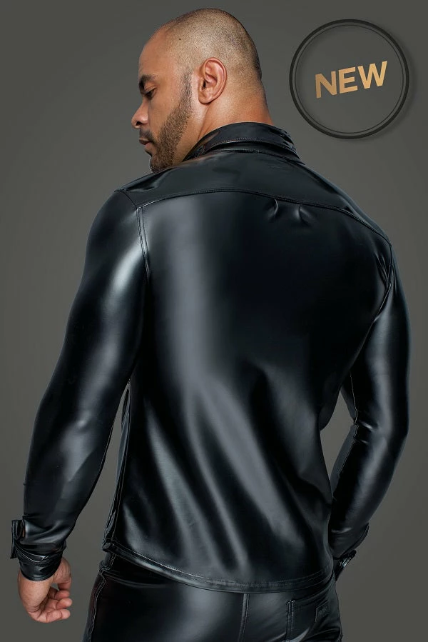 Stylish shirt with long sleeves and a trendy material mix of Power wet-look and PVC. The snaps on the cuffs allow the sleeves to be easily rolled up.