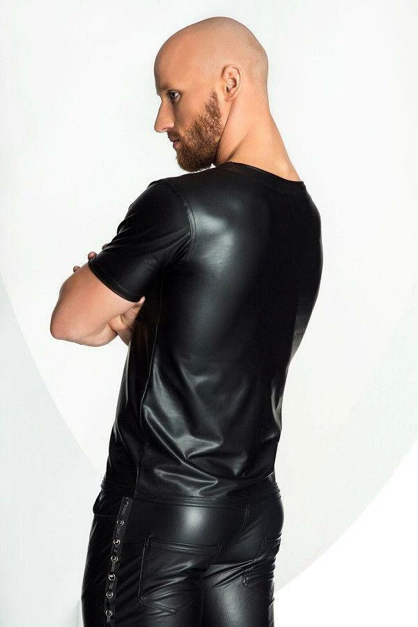 Noir Handmade Poland Men`s Eco-leather T-Shirt With Mesh