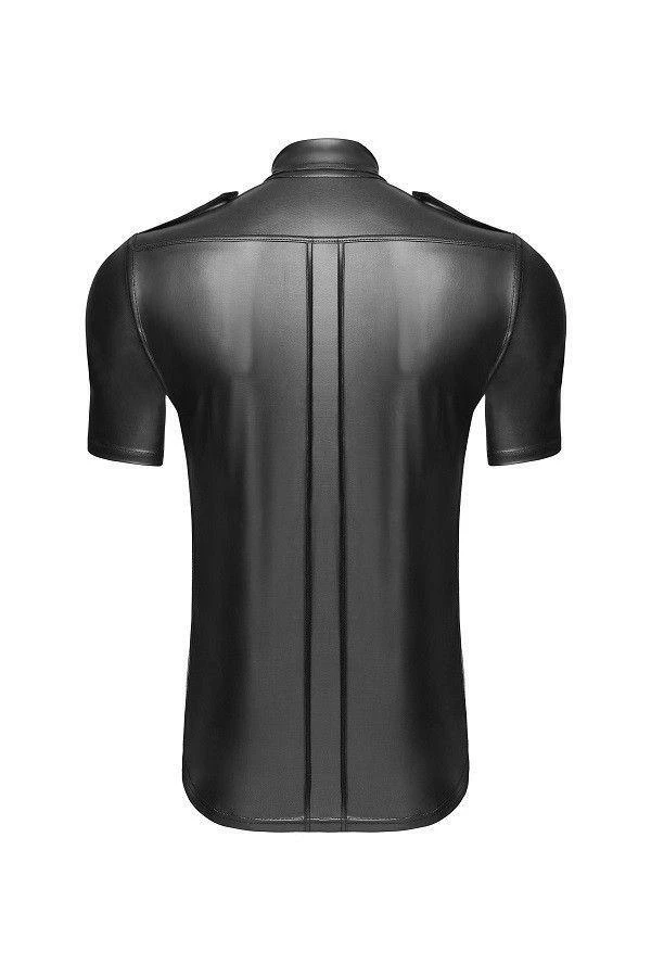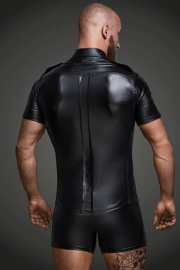 Sexy and elegant wet-look shirt for men. The shirt is fully buttoned in the front with two chest pockets. The perfect cut and the soft material ensures a perfect fit made in Poland. A high quality garment made from Eco leather by Noir Handmade. Awesome men`s Eco-leather vest with a unique look!