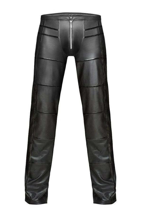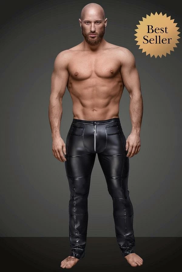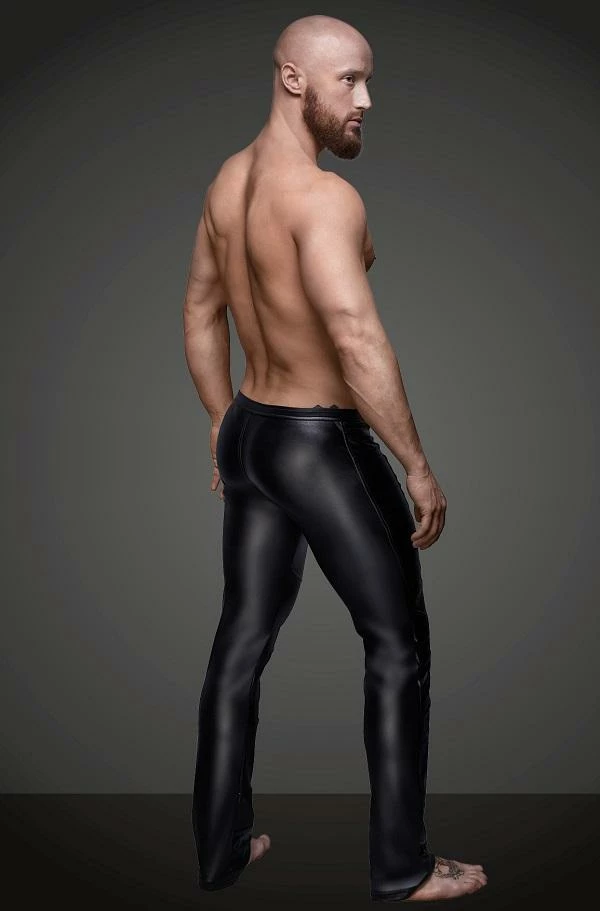 Slinky black wet-look trousers for men made in Poland by Noir Handmade Men`s Stronger Collection.