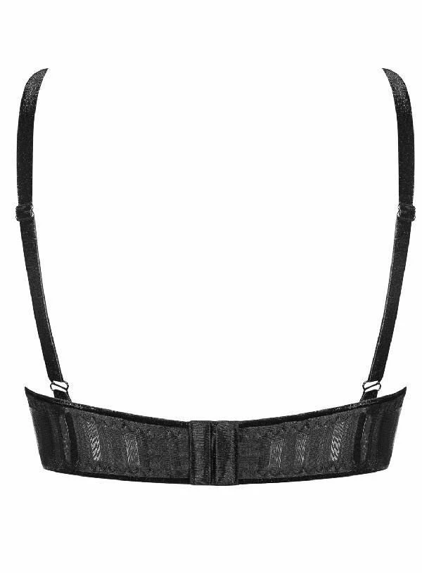 Under-wired unpadded high-neck soft tulle bra with round plunging. Comfortable and sexy at the same time. Made from semi-transparent strappy mesh fabric. Perfect for all occasions as well as every day wear. Standard bra straps on the back, hook &eye fastening.