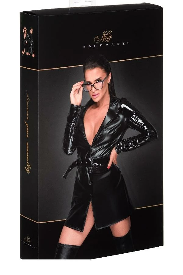 Trendy power wet look trench coat with long sleeves made of shiny PVC. The super stylish cut and the adjustable belt make this unique piece a must-have this fall.