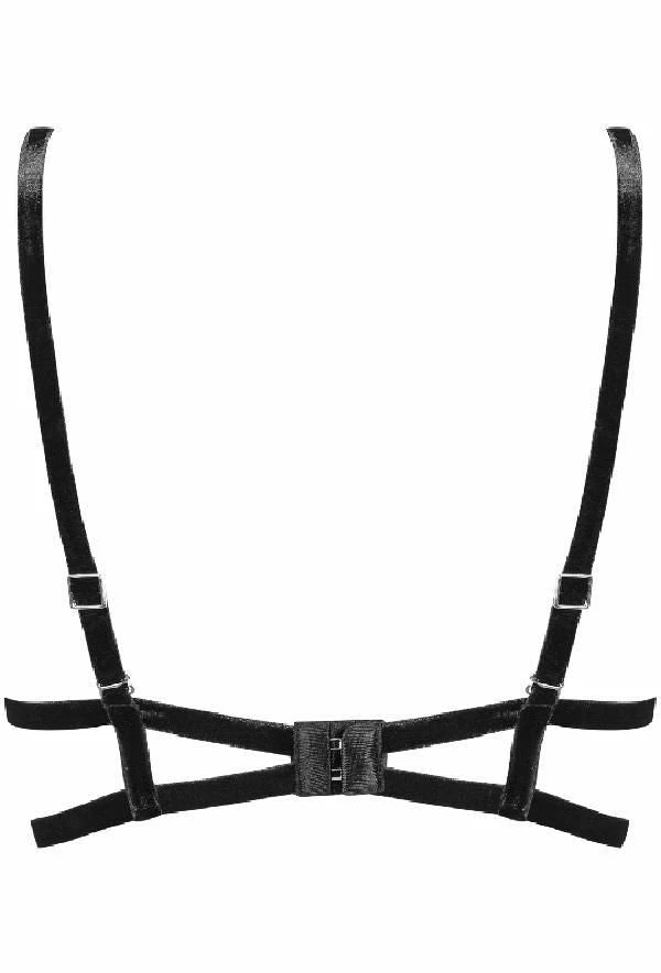 Under-wire plunge bra featuring adjustable and removable shoulder straps (the straps can be exchanged with golden chain and choker bra straps 2618 for exciting combination). Elegant lace cups with beautiful trimming create elegant and sexy look.
