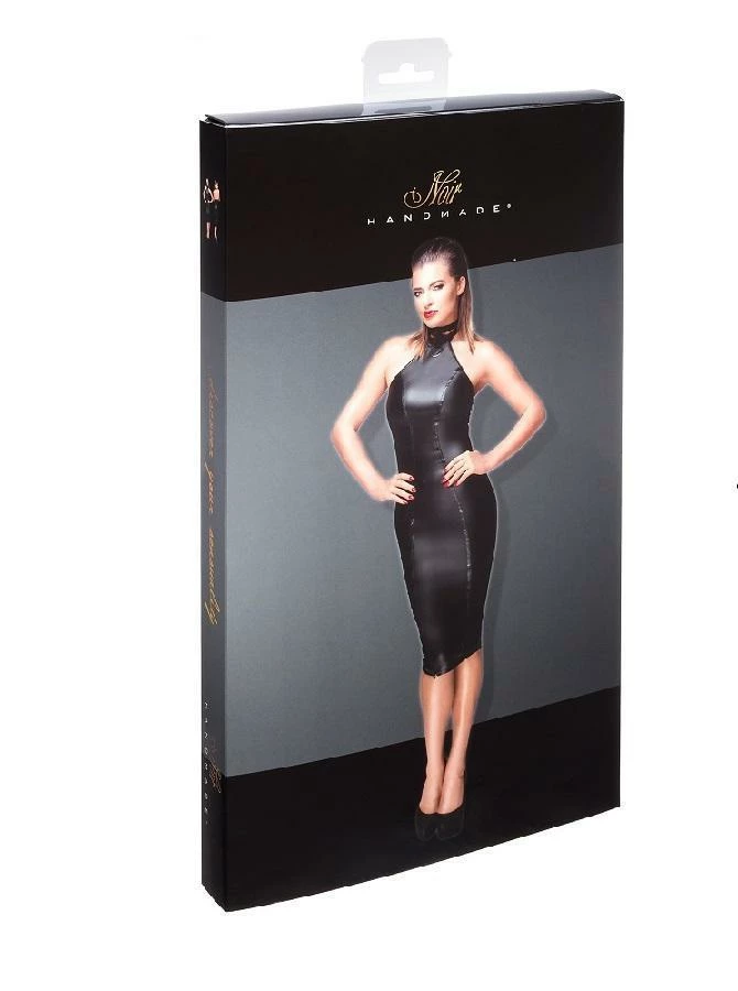 Power wet-look pencil dress with hook on collar two-way zipper. This sexy wet-look pencil backless dress with collar to show off your sophisticated style when you wear it. Provocative hoop on collar for naughty girls.
