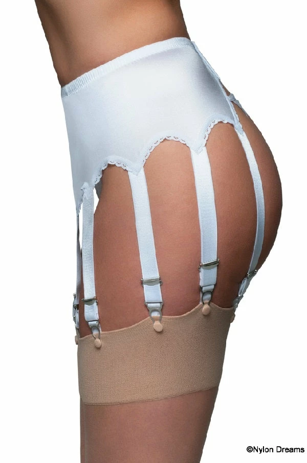 10 strap suspender belt with lace front panel also comes with our high quality metal clips and adjusters. Which mean they are durable for long life. The suspender clips which click into place on your stockings mean they will only let go of your stockings when you decide. These are attached to 19 mm wide quality elastic straps. These have a soft sheen to enhance the whole look, perfect when you want to look your best.