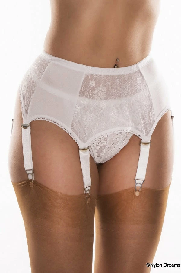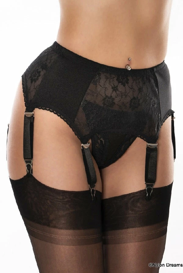 6 Strap Suspender Belt Lace Front and Sides. It is designed with a pretty lace front panel and at the sides there are separate plain and lace panels to make this belt extra pretty. In addition a scalloped edging lace also adorns the bottom edge of this suspender belt. Suspender belt comes with the all important metal clips and adjusters. Metal clips are used for durability because they last much longer than the plastic variety. The suspender clips click into place to hold your stockings securely.