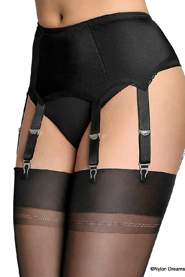 6 strap suspender belt with all plain panels also comes with our high quality metal clips and adjusters. Which mean they are durable for long life. The suspender clips which click into place on your stockings mean they will only let go of your stockings when you decide. These are attached to 19 mm wide quality elastic straps.