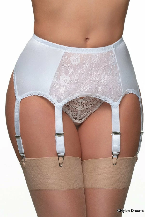 This 6 strap suspender belt with lace front panel has a beautiful flower design on the lace front and a fine mesh backing. So the front panel is pretty and feminine. At the back there is a two inch fine adjustment, with a three position hook and eye to ensure a perfect fit. It also features a pretty scalloped edging lace around the bottom edge of the belt.