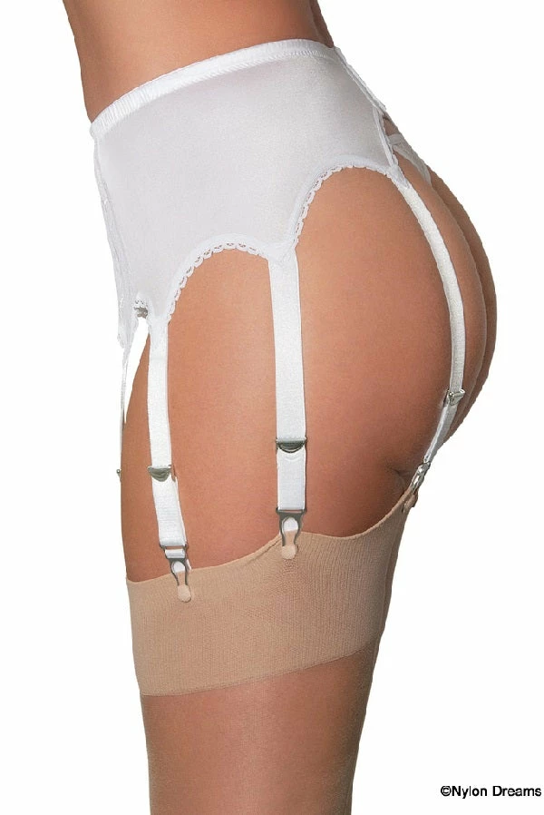 8 strap suspender belt lace front panel comes with all the standard features of our other belts. High quality metal clips and adjusters for long life. The suspender button clips click into onto your stocking tops to ensure they stay put and don’t let go until you want them to. Fabric is a nylon Lycra which is a two way stretch with a soft satin sheen that moves comfortably with you.This 8 strap suspender belt with lace front panel has a beautiful flower design on the lace front and a fine mesh backing. So the front panel is pretty and feminine. At the back there is a two inch fine adjustment, with a three position hook and eye to ensure a perfect fit. It also features a pretty scalloped edging lace around the bottom edge of the belt.