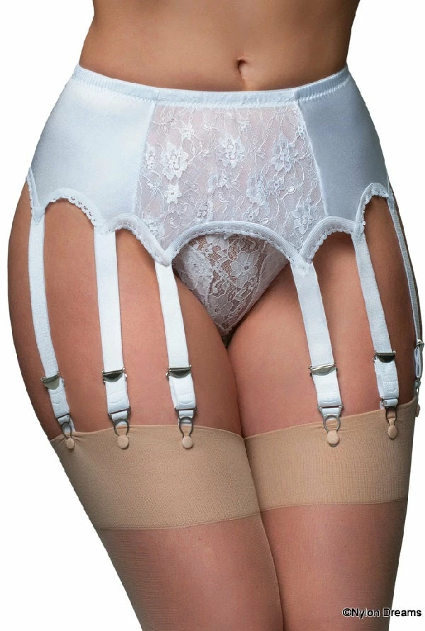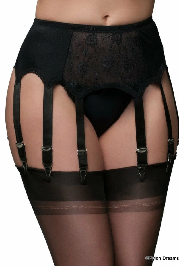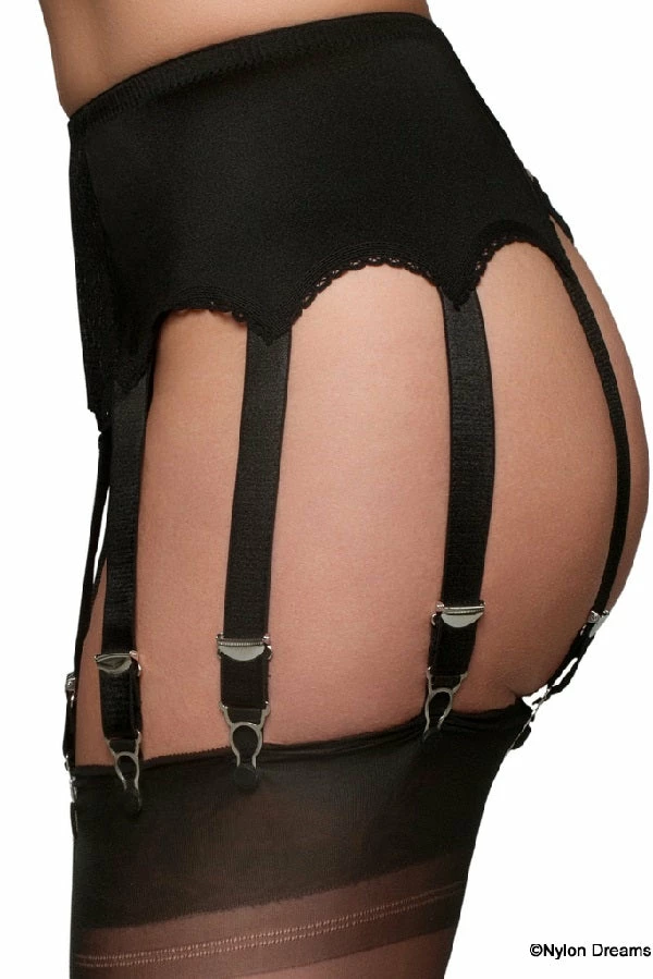 10 strap suspender belt with lace front panel also comes with our high quality metal clips and adjusters. Which mean they are durable for long life. The suspender clips which click into place on your stockings mean they will only let go of your stockings when you decide. These are attached to 19 mm wide quality elastic straps. These have a soft sheen to enhance the whole look, perfect when you want to look your best.