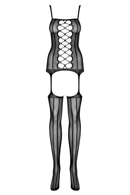 Crotch-less black body stocking is made from a sheer white material makes your body slimmer. It gives you the look of stockings and a corset and yet is all in one. It wonderfully emphasizes woman’s body and makes your legs look slimmer.
