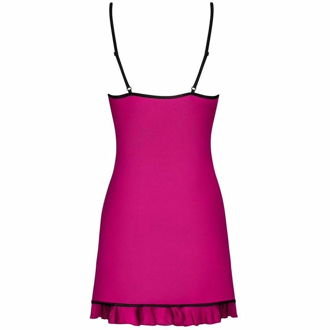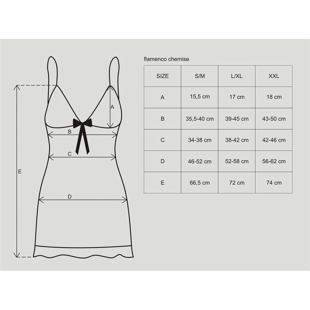 Classic chemise short nightdress by Obsessive lingerie Poland Deep décolletage nicely exposes bust, trimmed cups with lace and bow are eye-catching. Mild cut nicely emphasizes woman’s waist; bottom part of chemise is giving it feminine look. Matching thong included.