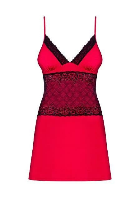 Feminine lingerie chemise nightdress in a beautiful colour! This nightdress is decorated with lace, adjustable straps for a perfect fit and transparent lace seductively exposes stomach. Also included is sexy thong included