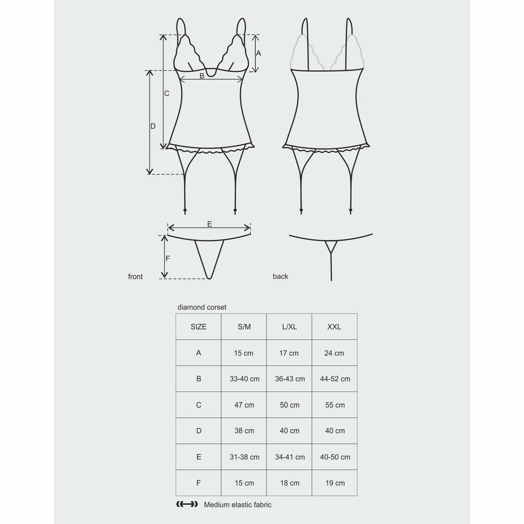 Beautiful, romantic lingerie white corset set with subtle, shiny zircons! This is a white lingerie corsetry set comfortable fabric with a floral motif, adjustable straps, triangular cups completed with lace and heavily cut neckline with zircons (without nickel!)