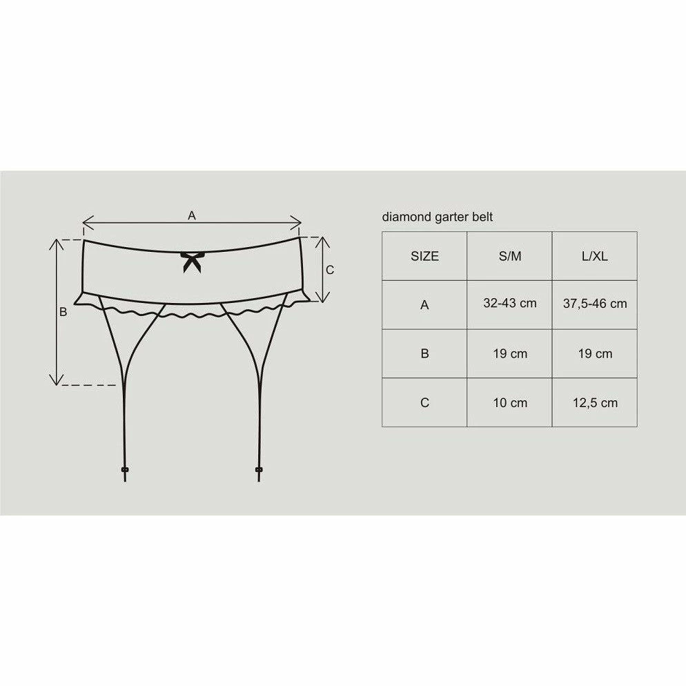 Feminine and sophisticated garter belt made of delicate fabric with a floral motif. This garter-belt is trimmed with playful ruffle, two shiny zircons (without nickel), charming bow in the middle of the belt and has adjustable straps.