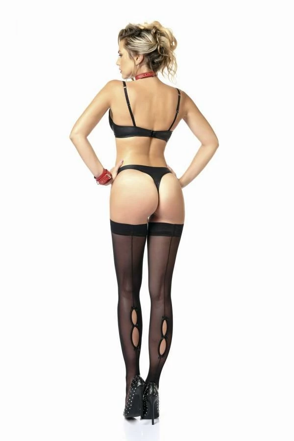 This black thong is a must in your wardrobe. It has a beautiful triangle cut that will highlight your buttocks. Wear it with the bra that goes with it, S also on this site. This set is available in red and black vinyl, black and silver hologram, in black wet-look and black faux leather also available on site.