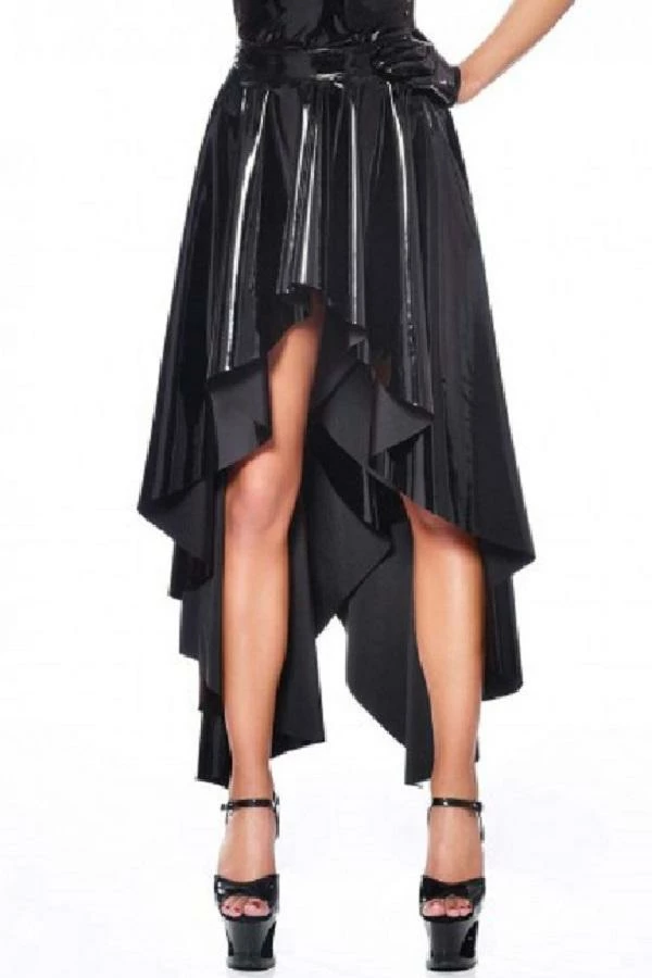 This black vinyl skirt belongs to Tome 16.2 by Patrice Catanzaro.