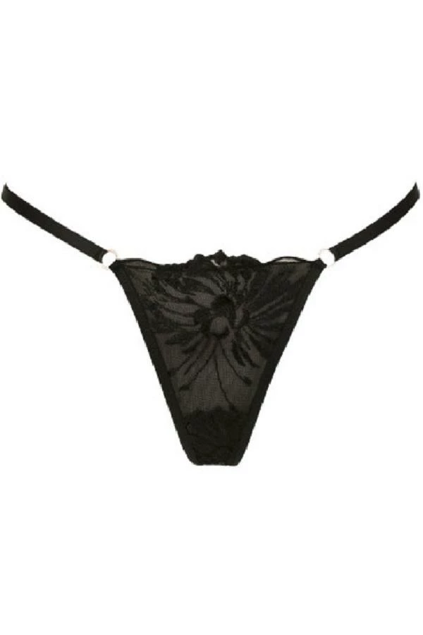 The Nina g-string is the perfect piece to match any outfit. In embroidered tulle and adjustable elastic at the sides to match perfectly with the rest of the theme.