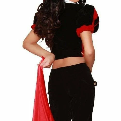 Sexy Bull fighter costume for women. This is a three-piece Torero fancy dress costume includes puffy sleeve jacket with gold trim, pants, and hat with bow.