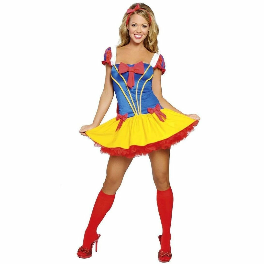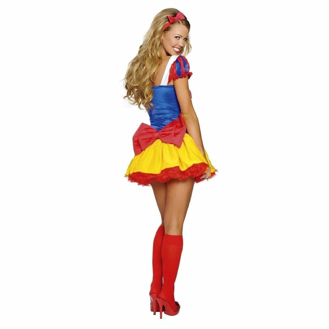 Two Piece Enchanting Snow Princess fancy dress costume by Roma costumes USA. This two-piece Enchanting Snow Princess costume includes a stretch spandex dress with bows and a headband.