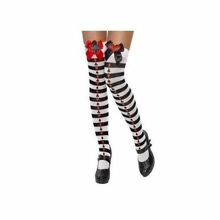 Smiffys 21086 Sheer Desires Black and white striped costume socks with bow and glitter motifs