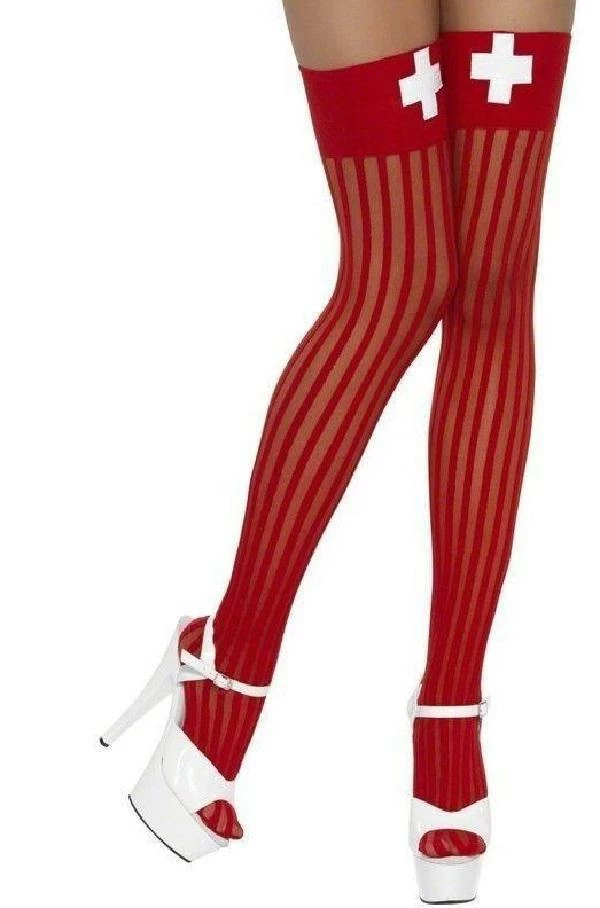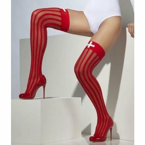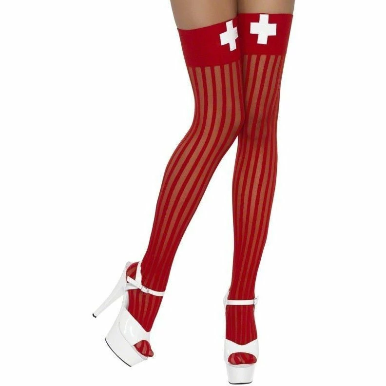 Smiffys Sheer Desires red inspired nurse costume socks with a cross
