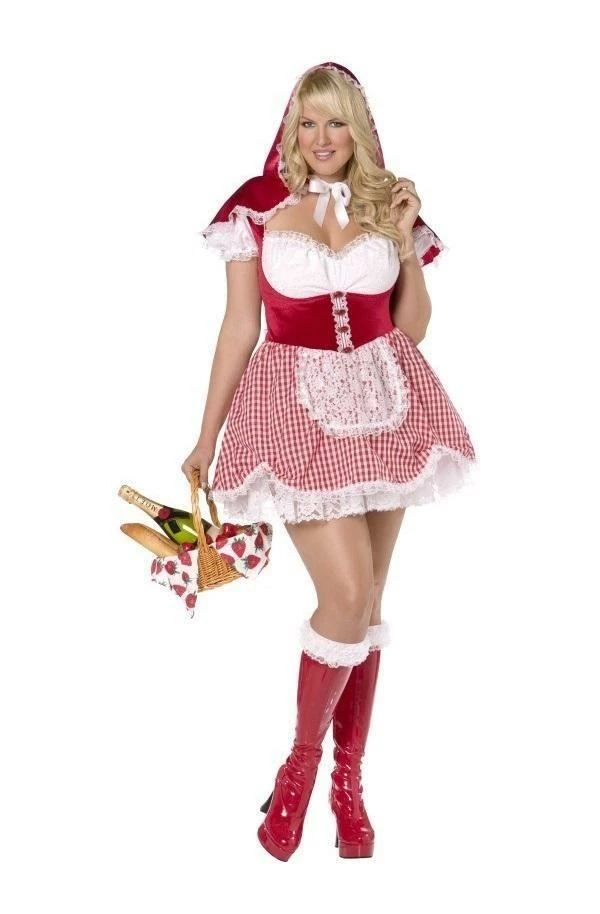 Plus size Little Riding Hood Fancy dress Ladies costume by Smiffy`s costumes. This costume includes a dress with a matching cape.